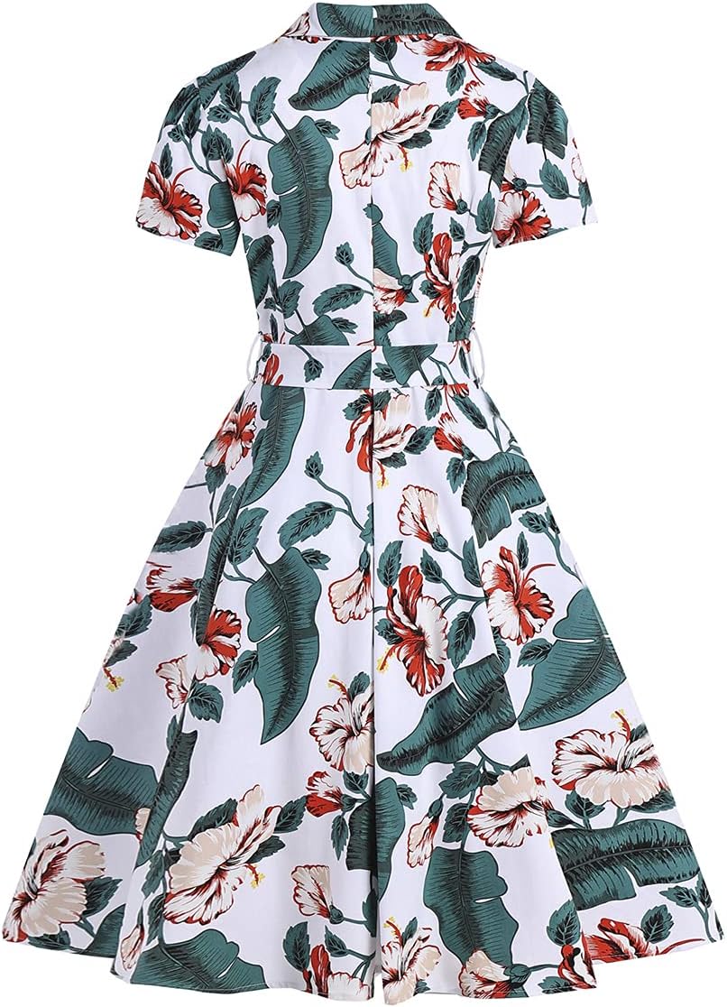 Women's Vintage Hepburn style fresh print Tea Dress Prom Swing Cocktail Party Dress with short-sleeved